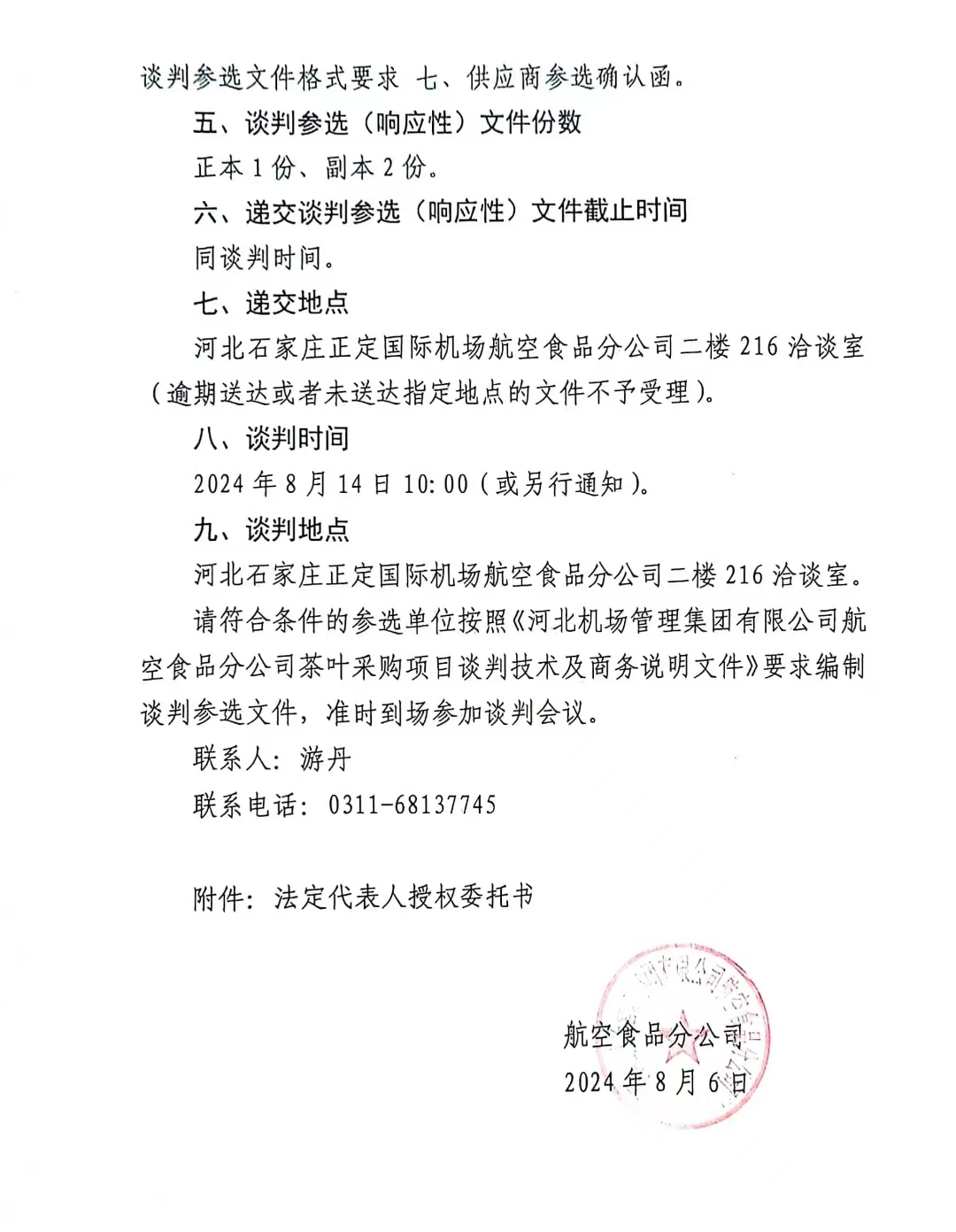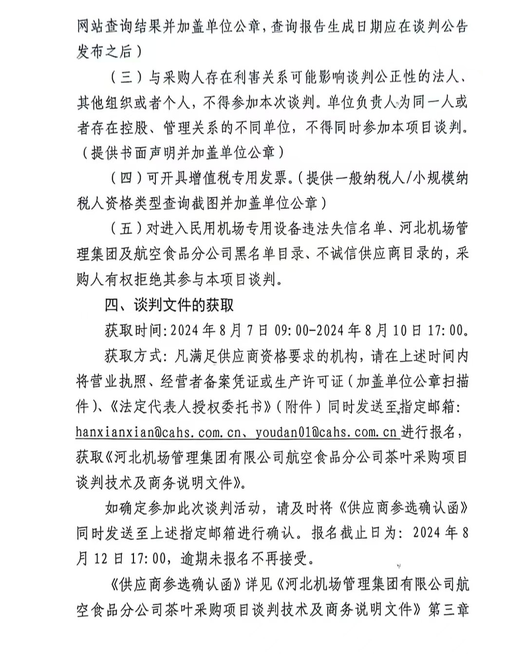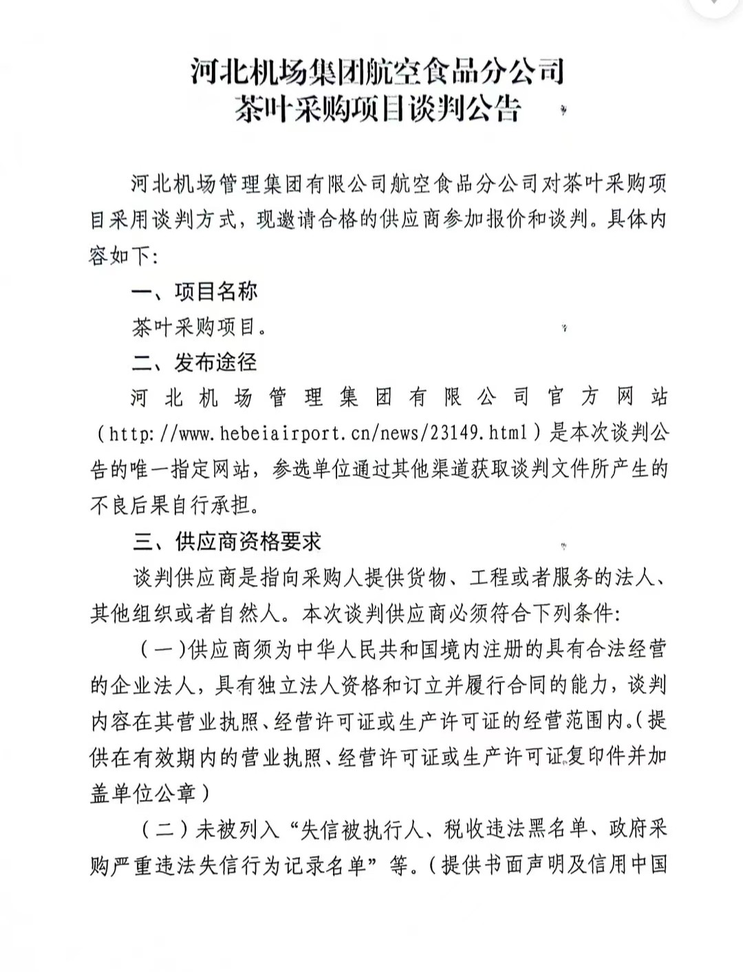河北機場集團航空食品分公司茶葉采購項目談判公告