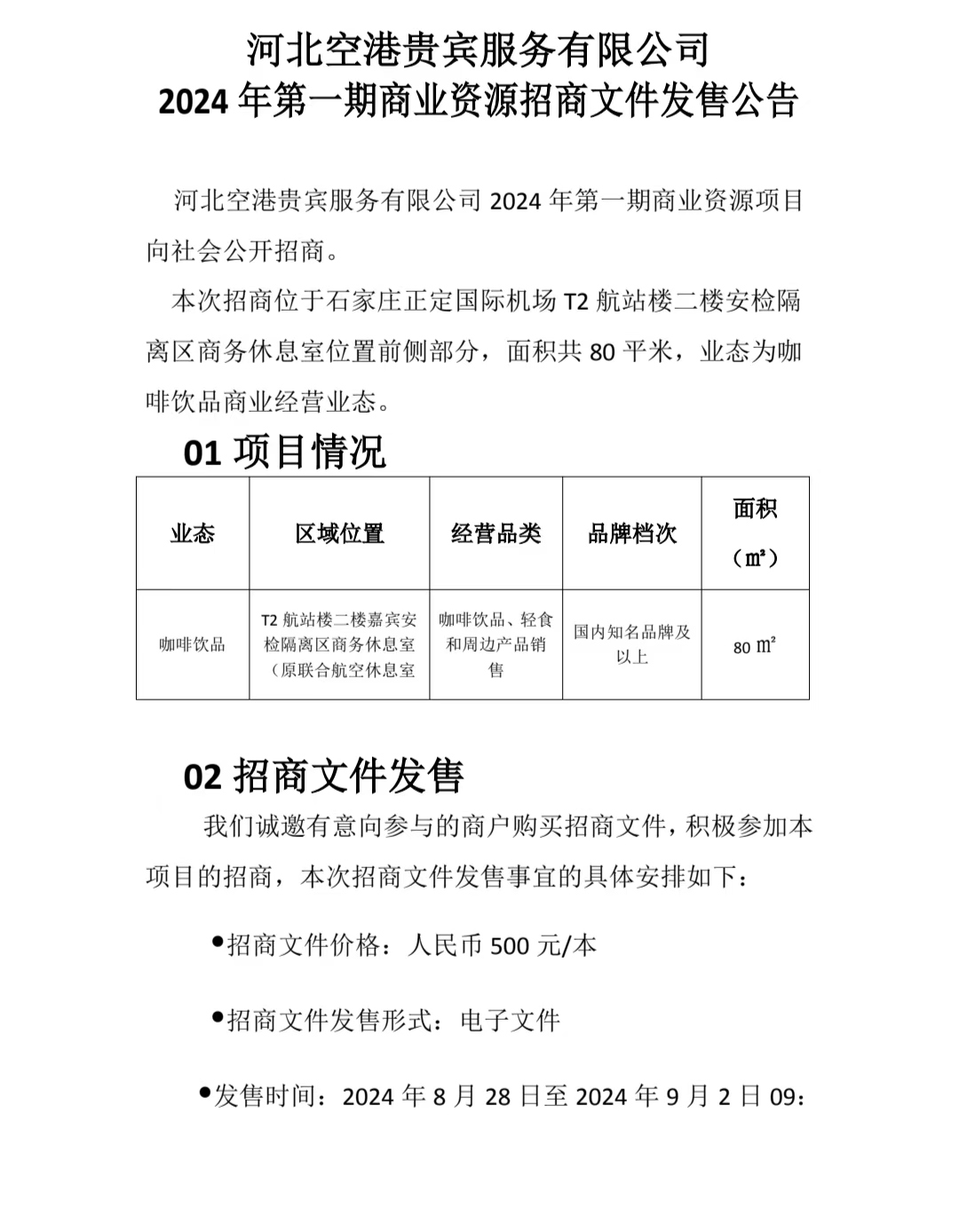 河北空港貴賓服務(wù)有限公司2024年第一期商業(yè)資源招商文件發(fā)售公告
