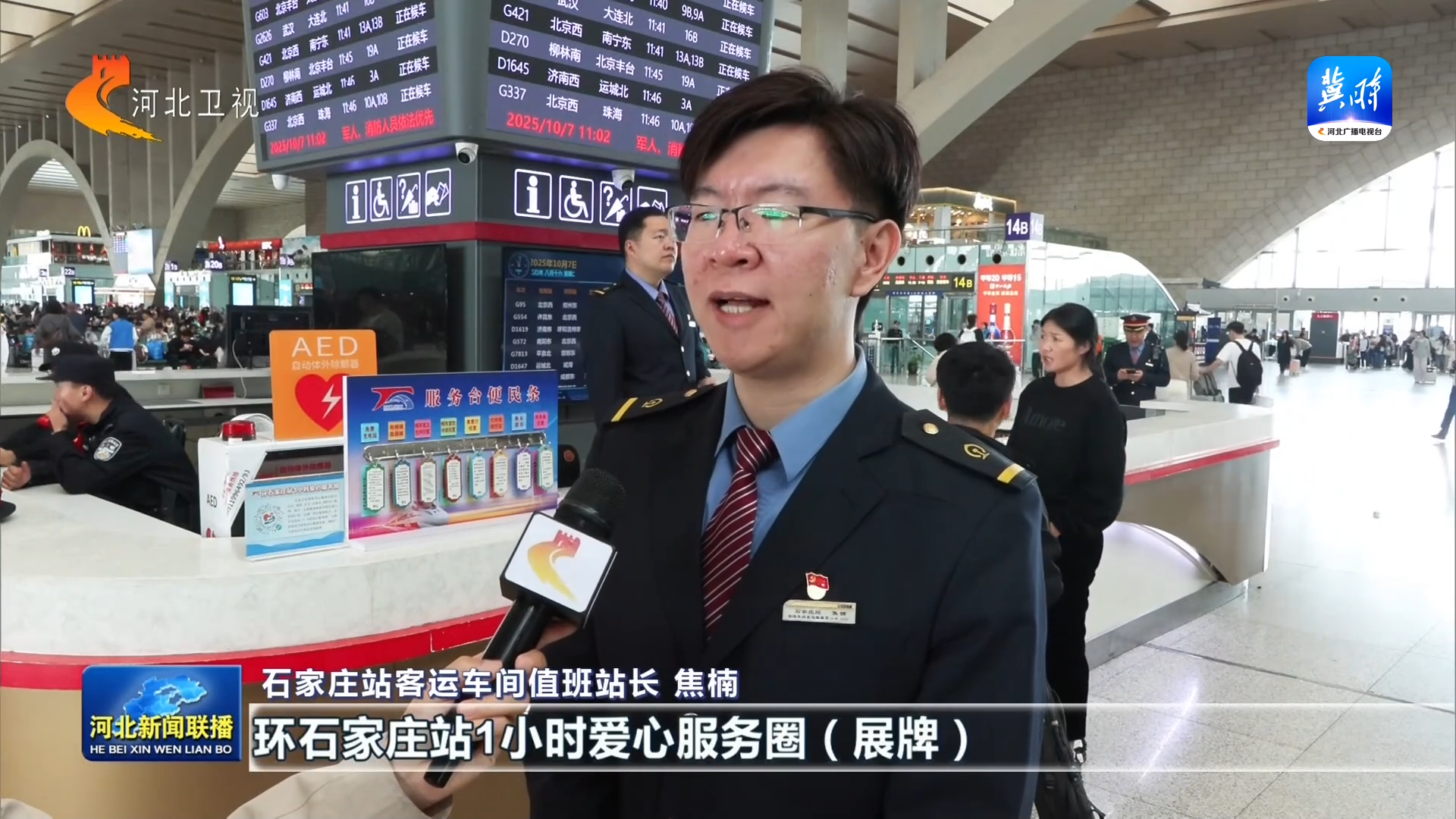 石家莊站客運車間值班站長 焦楠: 我們在服務臺設置了"環石家莊站1小時愛心服務圈"(展牌),旅客通過掃便能看到車站相關交通信息、餐飲美食、休閑住宿等內容,為旅客出行提供便利。 民航方面,返程客流迎來集中釋放。石家莊正定國際機場10月1日至7日累計運送旅客28.7萬人次,較去年同期增長8.7%。預計今天,機場單日旅客運送量仍將保持4.1萬人次的高位水平。 值得關注的是,降雨天氣導致部分路段擁堵,不少旅客抵達機場的時間較晚,面臨誤機風險,為此,石家莊機場第一時間啟動快速通道機制。